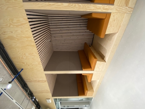 Byggematerialer er blitt hentet fra andre bygg, overskuddslagre og fra det opprinnelige kontorbygget. Vegger, dører, vinduer, ventilasjonskanaler, stål og sprinkelanlegg er gjenbrukt. Hulldekker er hentet fra regjeringskvartalet, gitterrister fra Tøyenbadet er blitt til rekkverk, samt at furubenkene fra svømmehallen er blitt til en atriumstrapp. Hvert materiale brukt i prosessen er nøye gjennomtenkt, noe som skal følges helt til siste detalj. Våre kolleger hos Scenario er nå på leting etter løst inventar som skal følge den samme grunnleggende ideen om gjenbruk og resirkulering. Det blir spennende å følge veien videre se det endelige resultatet!