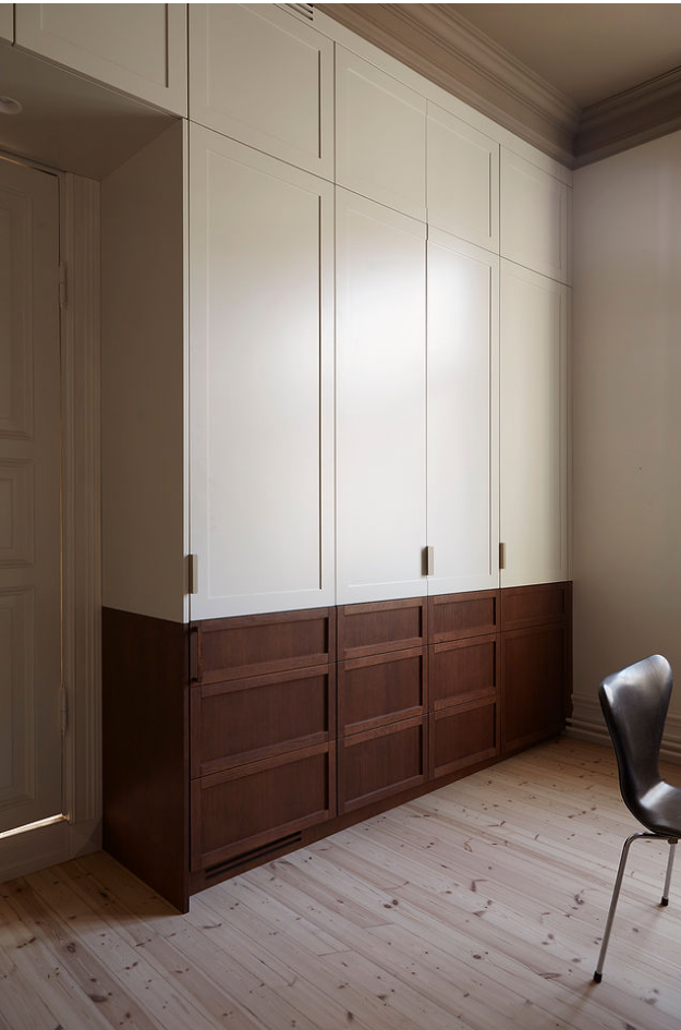 Gode kvaliteter med lang levetid var en viktig faktor i prosjektet. Ved å prioritere restaurering fremfor utskiftning og benytte naturlige, holdbare materialer, har interiøret fått en varig verdi. Alle faste innredninger er spesialtegnet av Scenario og levert av VIP Studio. Innredningene er tegnet slik de er for å harmonere best mulig med leilighetens historie og samtidig gi optimal funksjonalitet.